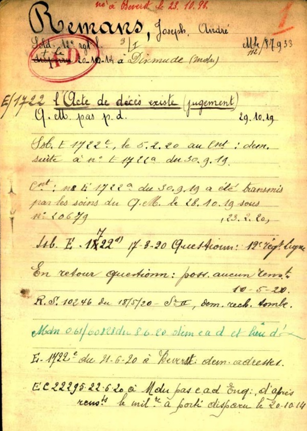Op 20 oktober 1940 sneuvelde Joseph Remans aan het front te Diksmuide.